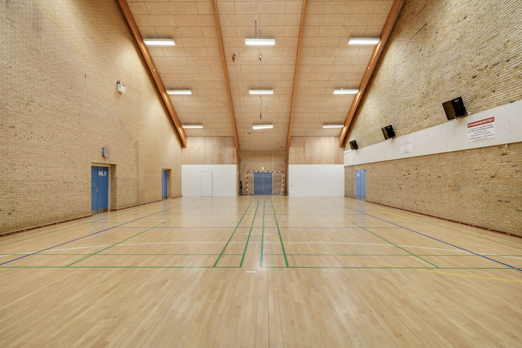 Hal BAreal: 1.289 m2 incl. omklædningsrum. Hallen alene er ca. 1.000 m2Siddepladser på gulvet til arrangementer svarer til 640 personer og er det maximale antal, der må være i hallen.Brug menuen øverst for ledige tider, priser m.m. | ![]() |